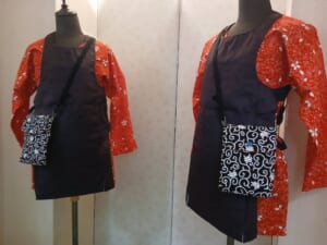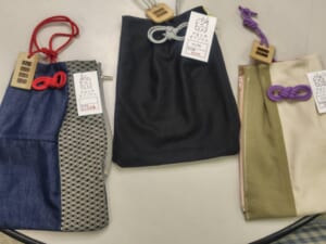 お祭りに使えるスマホや財布などが入れられる手作り袋類をご用意いたしました。