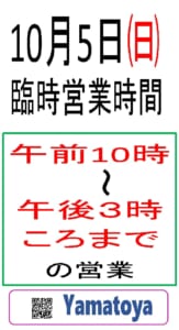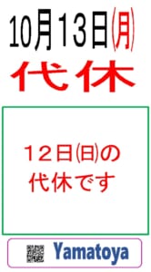 これに伴い13日(月・祝)は臨時休業とさせていただきます。
